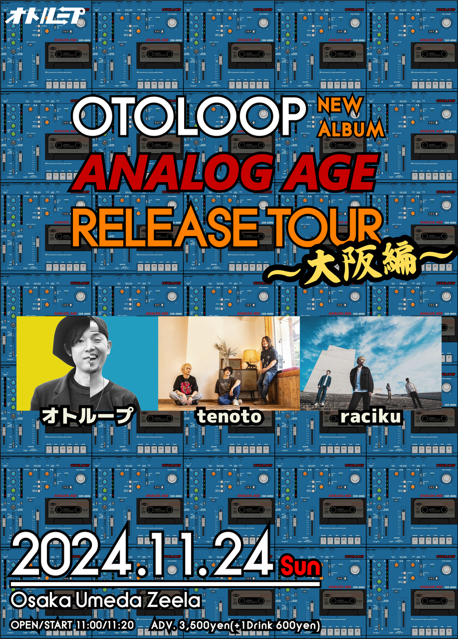 2024年08月02日 【ライブ情報解禁!!】11/24 『 オトループ NEW ALBUM "ANALOG AGE" RELEASE TOUR』 [ 会場 ] 梅田Zeela[ 開場 / 開演 ] 11:00 / 11:20[ チケット代 ] ¥3,500 (別途1D代 ¥600 ) ACT.racikuオトループtenotoチケット予約 カテゴリなしの他の記事 < 前の記事次の記事 >
